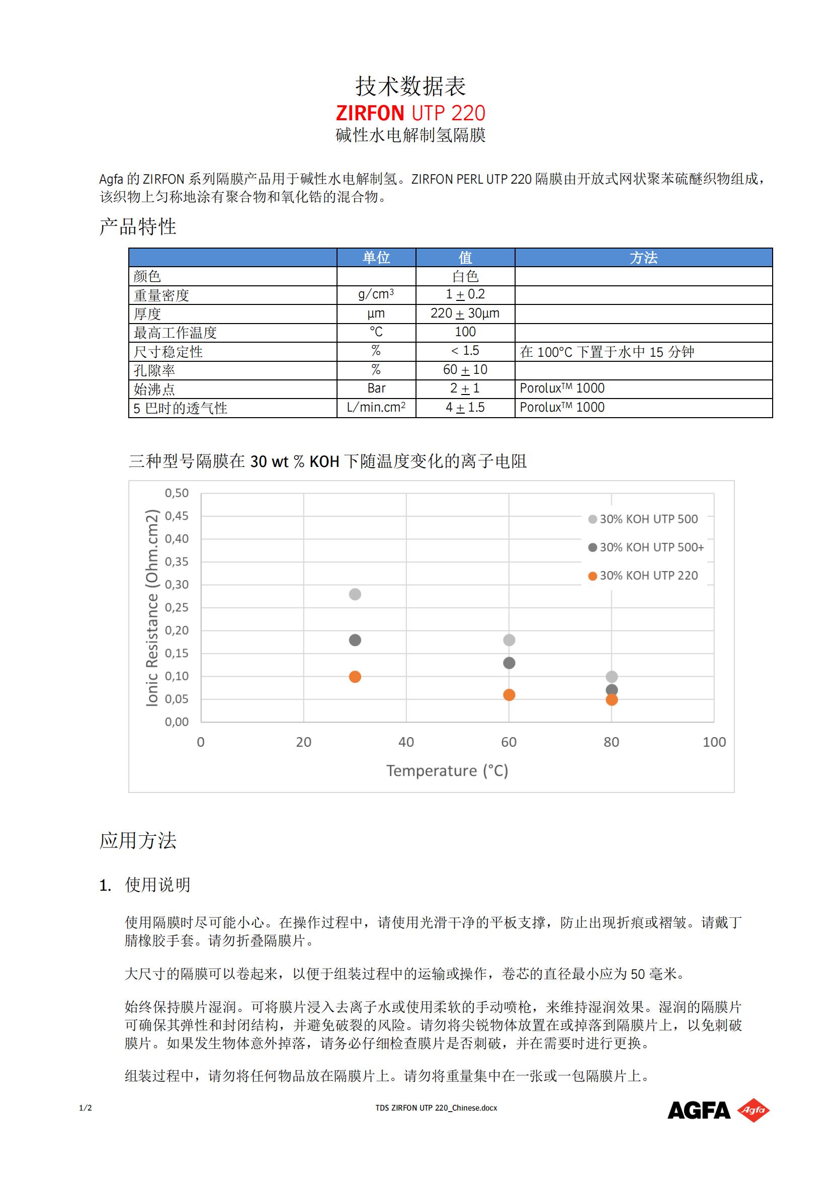 2021 年 5 月 5 日,AGFA推出用于生產(chǎn)綠色氫氣的高性能 ZIRFON UTP 220 膜。